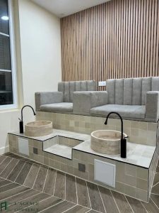 Local commercial en RDC comportant une boutique, une arrière-boutique et une pièce avec accès aménagé dans la boutique.