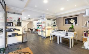Local commercial en RDC comportant un ensemble de boutiques : une première avec sous-sol, WC et lavabo relié par un escalier, une seconde avec sortie directe sur la cour et accès au sous-sol par escalier intérieur avec dégagement vers la cour de l'immeuble, ainsi qu'une troisième comprenant également un sous-sol accessible par escalier intérieur.